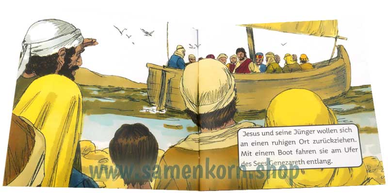 In diesem kleinen handlichen Heft geht es darum, wie mehr als 5000 Menschen von fünf Broten und zwei Fischen satt werden.