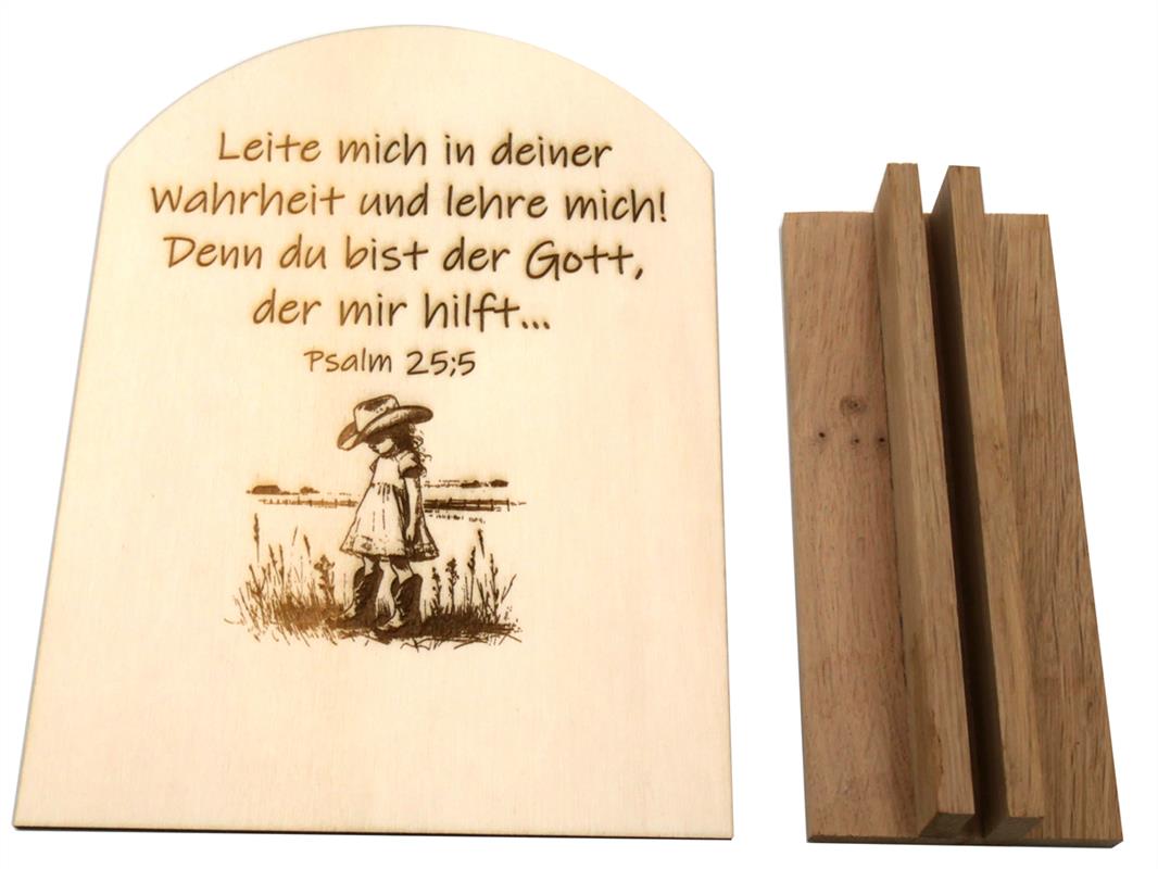 Aufstellbild mit dem Bibelvers aus Psalm 25,5: "Leite mich in deiner Wahrheit und lehre mich! Denn du bist der Gott der mir hilft ..."
