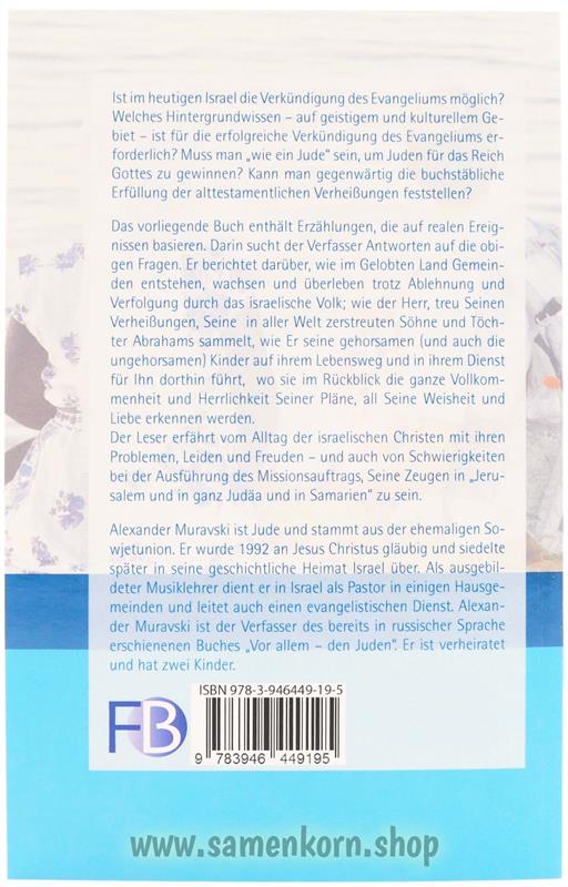 Das vorliegende Buch enthält Erzählungen, die auf realen Ereignissen basieren. Darin sucht der Verfasser Antworten auf die obigen Fragen. Er berichtet darüber, wie im Gelobten Land Gemeinden entstehen, wachsen und überleben trotz Ablehnung und Verfolgung durch das israelische Volk; wie der Herr, treu Seinen Verheißungen, Seine in aller Welt zerstreuten Söhne und Töchter Abrahams sammelt, wie Er seine gehorsamen (und auch die ungehorsamen) Kinder auf ihrem Lebensweg und in ihrem Dienst für Ihn dorthin führt, wo sie im Rückblick die ganze Vollkommenheit und Herrlichkeit Seiner Pläne, all Seine Weisheit und Liebe erkennen werden.