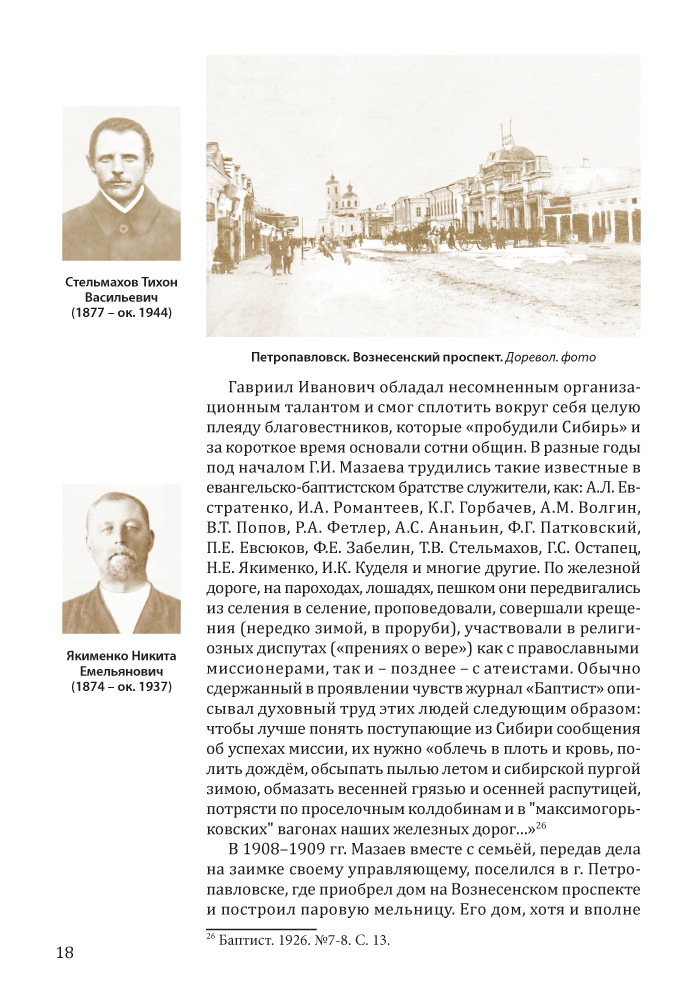 В книге собраны двадцать очерков о выдающихся благовестниках Сибирского союза христиан-баптистов, чей духовный труд относится преимущественно к дореволюционному и раннему советскому периодам. Многие из этих людей могут послужить образцом доброй христианской жизни, увенчанной подвигом мученичества. Представленные в сборнике биографии благовестников, за редким исключением, публикуются впервые. Книга богато иллюстрирована и может быть интересна как евангельским верующим, так и широкому кругу читателей.