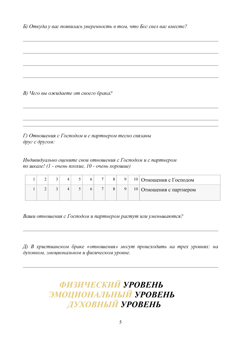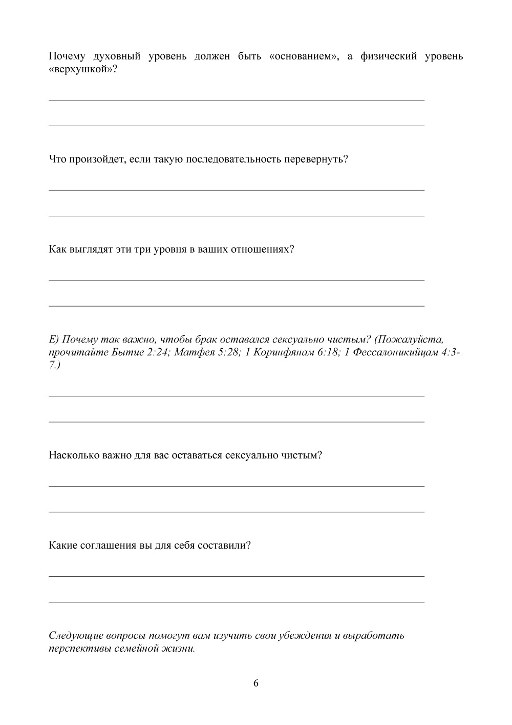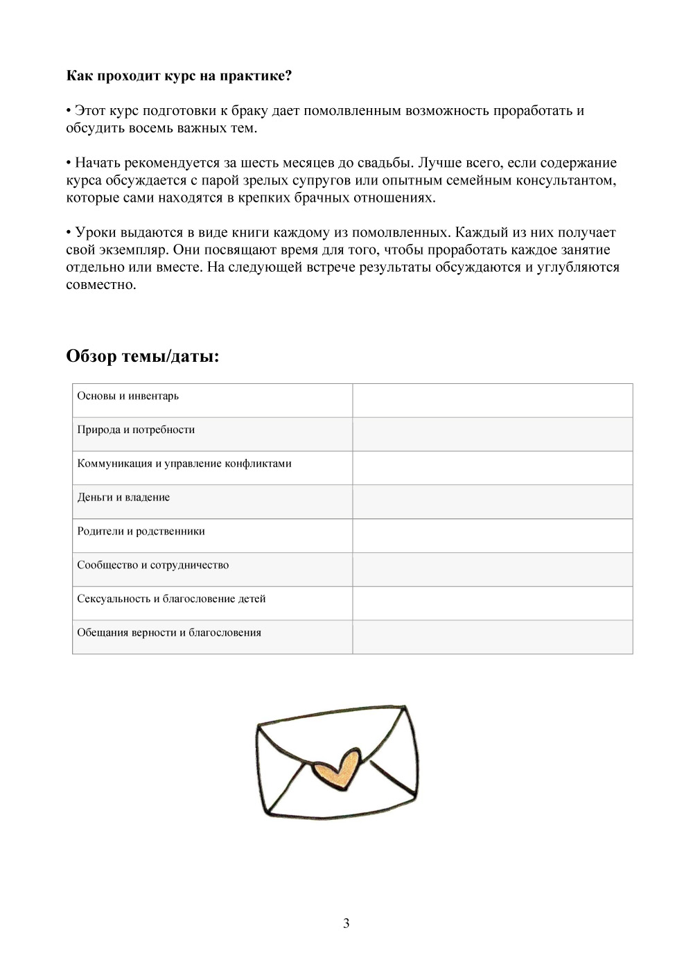 Заложить прочный, библейский фундамент для успешного брака — это цель данного курса по подготовке к браку. В сотрудничестве с опытным семейным консультантом или более зрелой супружеской парой, будущие супруги могут с помощью этого курса разработать и переосмыслить божественные цели и стандарты для брака.