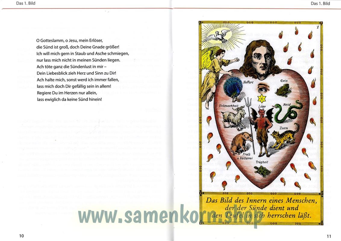Der Zustand des Herzens eines Menschen wird in zehn Sinnbildern von Johannes Goßner (1773-1858) dargestellt und erklärt. Auf jedem Bild erscheinen ein Herz und ein Gesicht. Aus dem Zustand des Herzens, das der Sitz und die Werkstätte des Guten und Bösen ist, muss der ganze Mensch beurteilt werden.