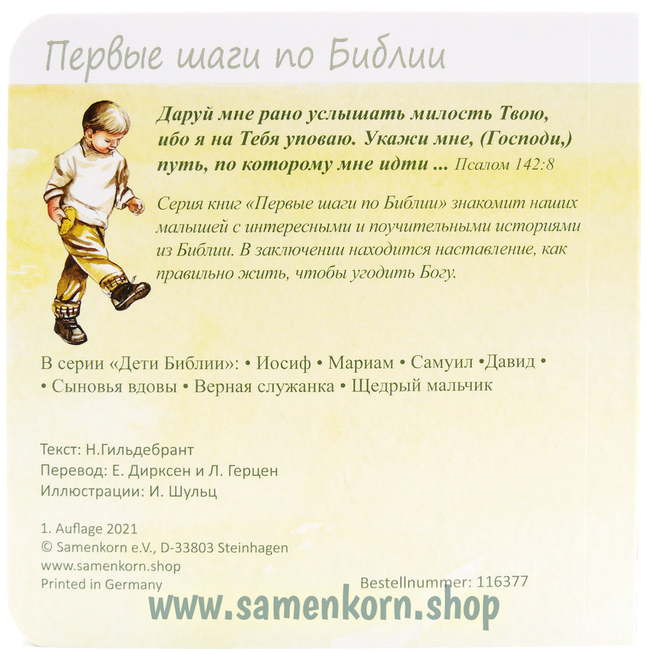 Серия книг "Первые шаги по Библии" знакомит наших малышей с интересными и поучительными историями из Библии. В заключении находится наставление, как правильно жить, чтобы угодить Богу.