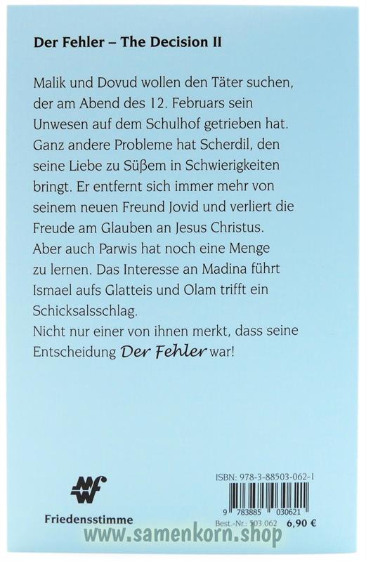 Malik und Dovud wollen den Täter suchen, der am Abend des 12. Februars sein Unwesen auf dem Schulhof getrieben hat. Ganz andere Probleme hat Scherdil, den seine Liebe zu Süßem in Schwierigkeiten bringt. Er entfernt sich immer mehr von seinem Freund Jovid und verliert die Freude am Glauben an Jesus Christus. Aber auch Parwis hat noch eine Menge zu lernen. Das Interesse an Madina führt Ismael aufs Glatteis und Olam trifft ein Schicksalsschlag.