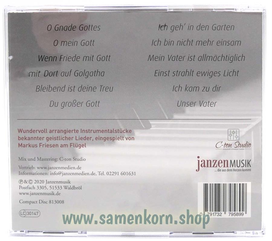 Wundervoll arrangierte Instrumentalstücke bekannter geistlicher Lieder, eingespielt am Flügel von Markus Friesen.