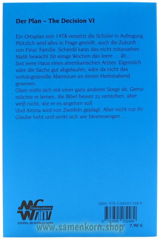 Ein Ortsplan von 1978 versetzt die Schüler in Aufregung. Plötzlich ist alles in Frage gestellt, auch die Zukunft von Firus' Familie. Scherdil kann das nicht mitansehen. Malik bewacht für einige Wochen das leere, … äh… fast leere, Haus eines amerikanischen Arztes. Eigentlich wäre die Sache gut abgelaufen, wäre da nicht das verhängnisvolle Abenteuer an einem Herbstabend gewesen. Olam müht sich mit einer ganz anderen Sorge ab. Gerne möchte er die Bibel besser verstehen lernen, aber weiß nicht, wie er es angehen soll. Und Amina wird von Zweifeln geplagt. Aber nicht nur ihr Glaube hebt und senkt sich wie Meereswogen!