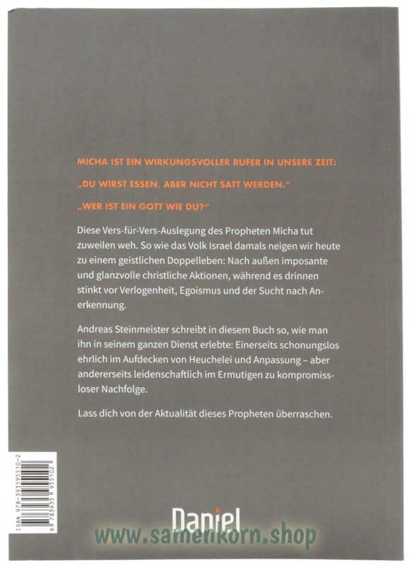 Andreas Steinmeister schreibt in diesem Buch so, wie man ihn in seinem ganzen Dienst erlebte: Einerseits schonungslos ehrlich im Aufdecken von Heuchelei und Anpassung – aber andererseits leidenschaftlich im Ermutigen zu kompromissloser Nachfolge. Lass dich von der Aktualität dieses Propheten überraschen.