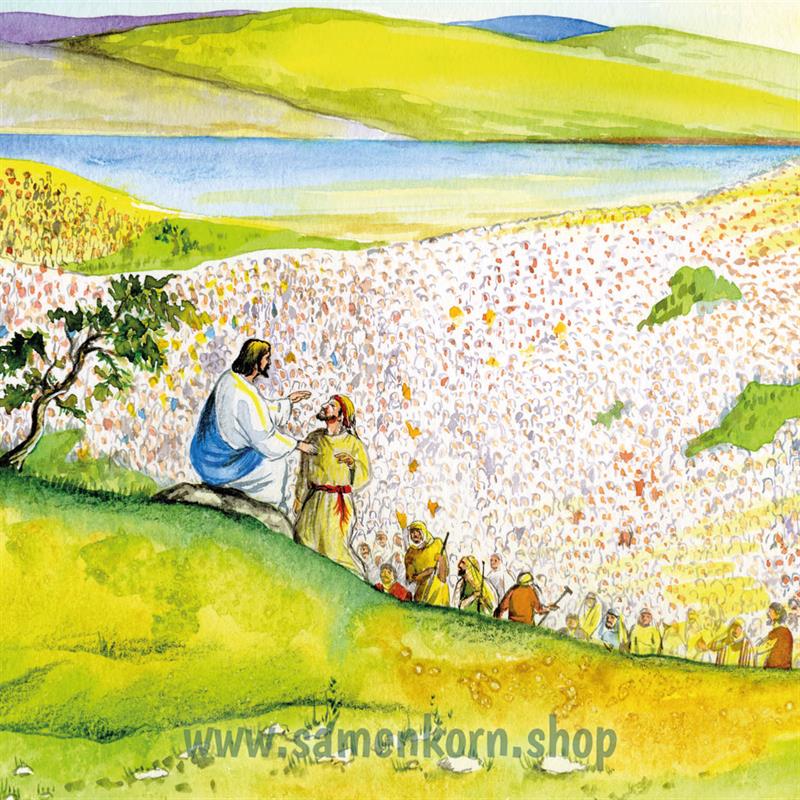 Das Pappbuch erzählt kindergerecht die biblische Geschichte von den fünf Broten und zwei Fischen, umrahmt mit wunderschönen Bildern.