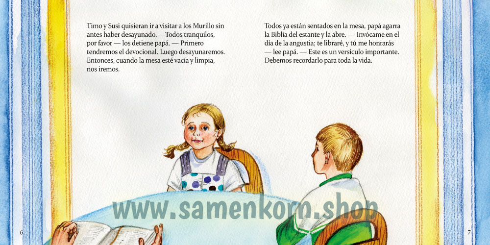 Cada domingo en la mañana, la familia Hofman va a la iglesia con abuela Lola. En la tarde, Timo y Susi van a la escuela dominical. Allí cantan cantos lindos y la hermana Renate les cuenta historias bíblicas muy interesantes.