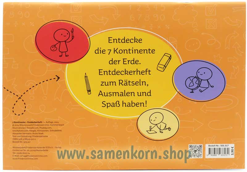 Entdeckerheft für Kinder zum Rätseln und Spaß haben! Gott hat die Welt wunderbar erschaffen. Unsere Erde ist reich an Leben. Auf jedem Kontinent der Welt leben unterschiedliche Menschen, Tiere und auch die Natur lässt uns staunen. Entdecke Gottes wunderbare Schöpfung rund um den Globus! Es gibt Rätsel, um die Kontinente und Tiere besser kennenzulernen, dazu Bilder zum Ausmalen.