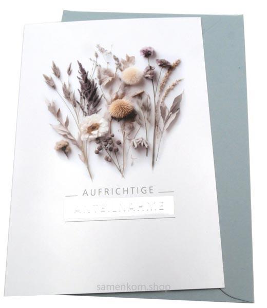 Trauerkarte "Aufrichtige Anteilnahme" mit Silbergravur.