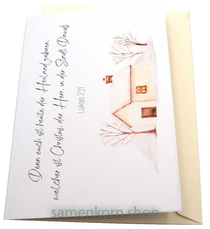 mit dem Bibelvers "Denn euch ist heute der Heiland geboren, welcher ist Christus, der Herr, in der Stadt Davids. Lukas 2,11"