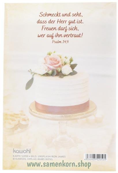 Mit Bibelvers auf der Rückseite: "Schmeckt und seht, dass der Herr gut ist. Freuen darf sich, wer auf ihn vertraut! Psalm 34,9"
