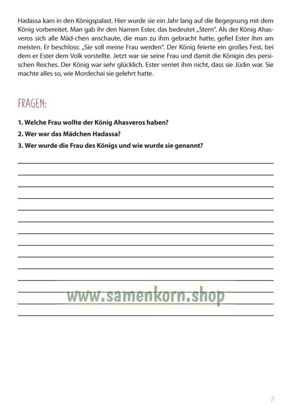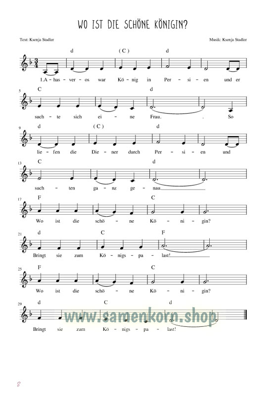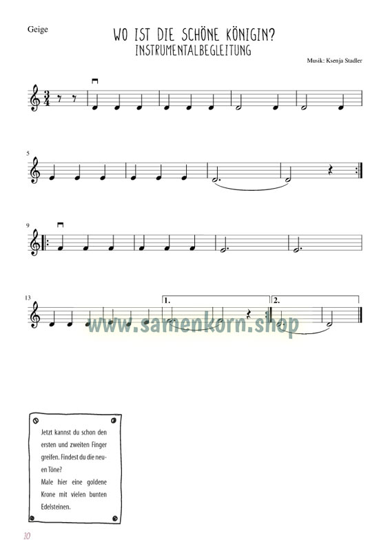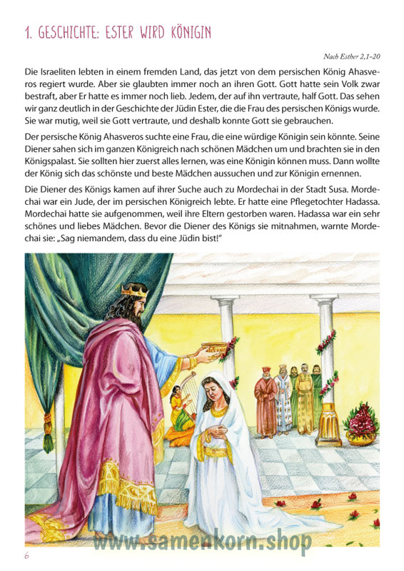 Unterrichtskonzept für den Streichergruppenunterricht mit Kindern ab 7 Jahren im christlichen Umfeld und biblischen Kontext für Violine, Bratsche, Violoncello und Kontrabass. Die Kinder erlernen die musikalischen Grundkenntnisse und die grundlegende Instrumentaltechnik eines Streichinstrumentes. Das Material basiert auf der biblischen Geschichte von Esther. Alle Lieder, Spiele und Übungen bauen instrumentaltechnisch und musikalisch aufeinander auf und beziehen sich auf die jeweilige Bibelgeschichte. Für Gruppen bis zu 20 Kindern auf eine Kursdauer von 2 Jahren ausgelegt. Mit Stimmenauszügen für die einzelnen Instrumente.