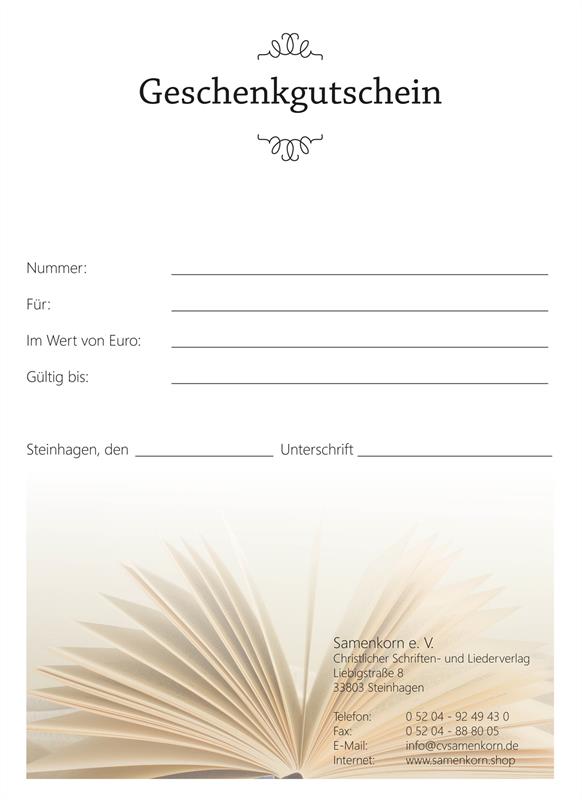 Gutschein ist nicht teilbar! Bei abweichenden Beträgen bitte telefonisch oder per E-Mail bestellen!