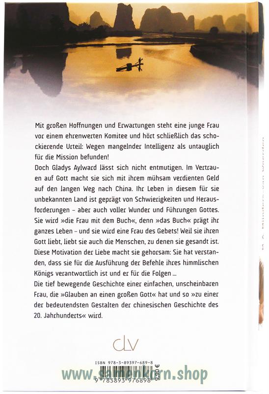 Doch Gladys Aylward lässt sich nicht entmutigen. Im Vertrauen auf Gott macht sie sich mit ihrem mühsam verdienten Geld auf den langen Weg nach China. Ihr Leben in diesem für sie unbekannten Land ist geprägt von Schwierigkeiten und Herausforderungen - aber auch voller Wunder und Führungen Gottes. Sie wird "die Frau mit dem Buch", denn "das Buch" prägt ihr ganzes Leben - und sie wird eine Frau des Gebets! Weil sie ihren Gott liebt, liebt sie auch die Menschen, zu denen sie gesandt ist. Diese Motivation der Liebe macht sie gehorsam: Sie hat verstanden, dass sie für die Ausführung der Befehle ihres himmlischen Königs verantwortlich ist und er für die Folgen ...