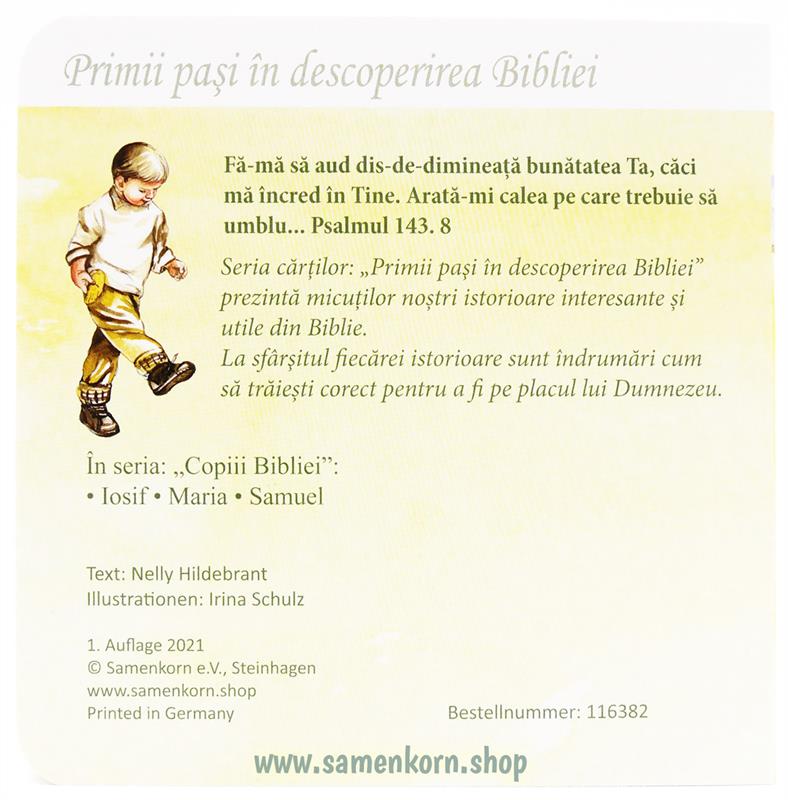 Die Reihe "Die ersten Schritte durch die Bibel" macht die kleinen Kinder ab 2 Jahren mit den interessanten und lehrreichen Geschichten der Bibel bekannt. Jedes Büchlein enthält eine Lehre, die unsere Kleinen dazu ermutigt, Gott zu vertrauen.