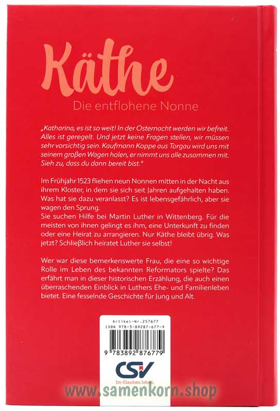 Das erfährt man in dieser historischen Erzählung, die auch einen überraschenden Einblick in Luthers Ehe- und Familienleben bietet. Eine fesselnde Geschichte für Jung und Alt, in der die Sitten und Gebräuche der damaligen Zeit gut zum Vorschein kommen.