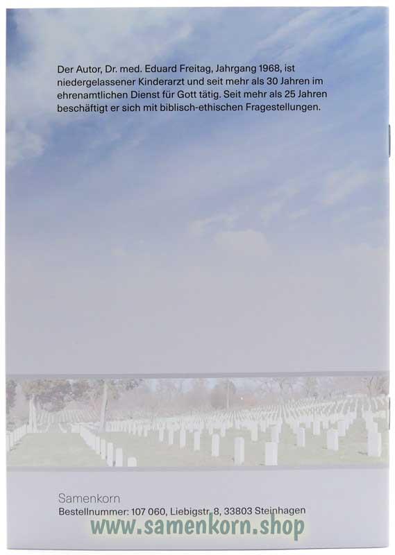 Der Autor, Dr. med. Eduard Freitag, Jahrgang 1968, ist niedergelassener Kinderarzt und seit mehr als 30 Jahren im ehrenamtlichlichen Dienst für Gott tätig. Seit mehr als 25 Jahren beschäftigt er sich mit biblisch-ethischen Fragestellungen.