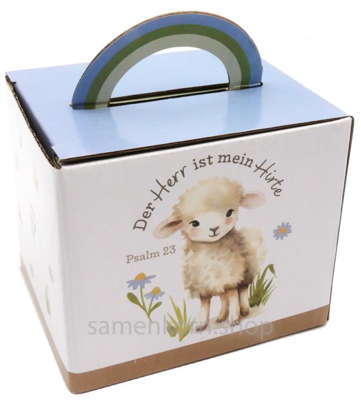 Ideale Größe für Kinder: Tasse mit niedlichem Schäfchen-Motiv und Vers: "Der Herr ist mein Hirte".