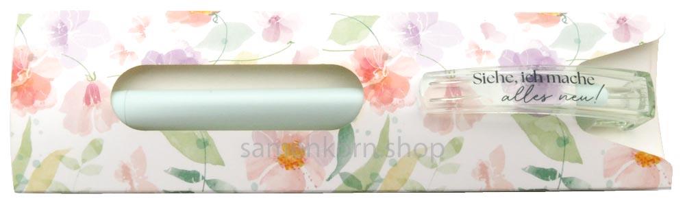 Besonders schön und direkt zum Verschenken: Der Kugelschreiber ist in einem stabilen Papp-Etui mit Jahreslosungsmotiv verpackt.
