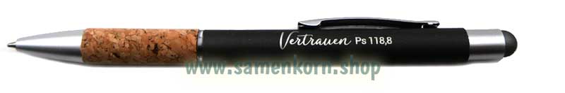 Eleganter Kugelschreiber aus Aluminium mit Touch-Funktion, mit Griffzone aus aus natürlichem Kork und matter Oberfläche, blauschreibend.