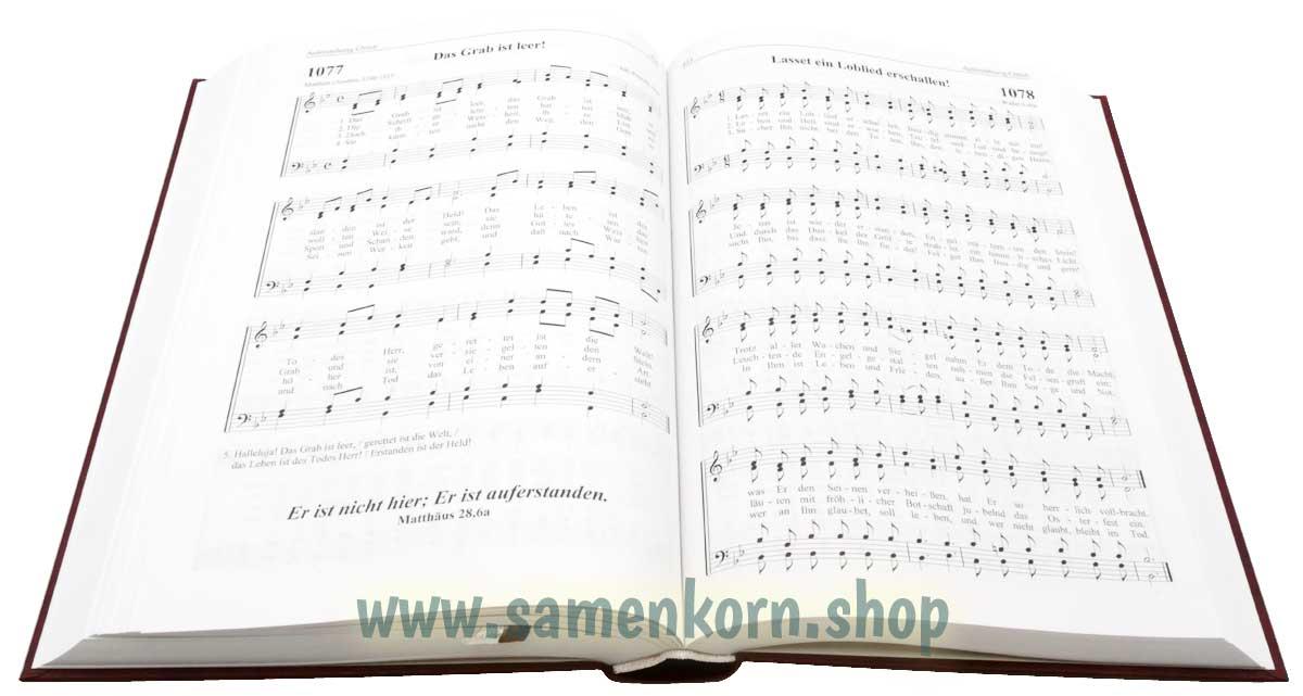 Überarbeitete Notenausgabe in zwei Bänden mit 1311 geistlichen Liedern für den allgemeinen Gesang in den Gemeinden. Vierstimmiger Satz, neue Rechtschreibung.