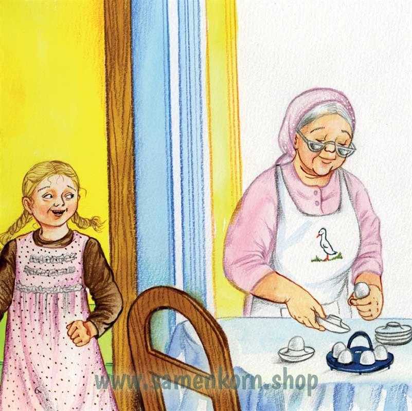Oma Lotte erzählt Tim und Susi die Geschichte von Mose uns Miriam.