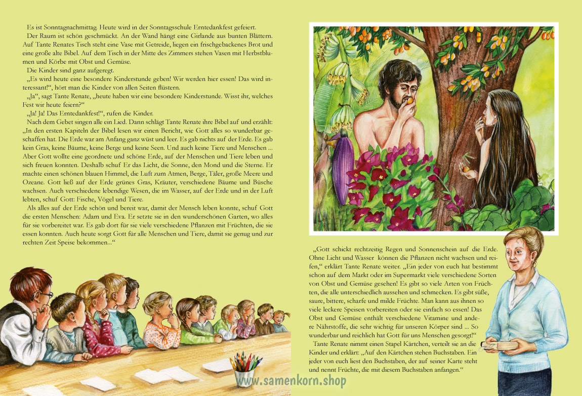 Wenn du dieses Heft durchliest, erfahrst du welche biblische Geschichte Tante Renate den Kindern erzählt hat, was die Jungen und die Mädchen erlebt haben und darfst selber eine Aufgabe lösen ...