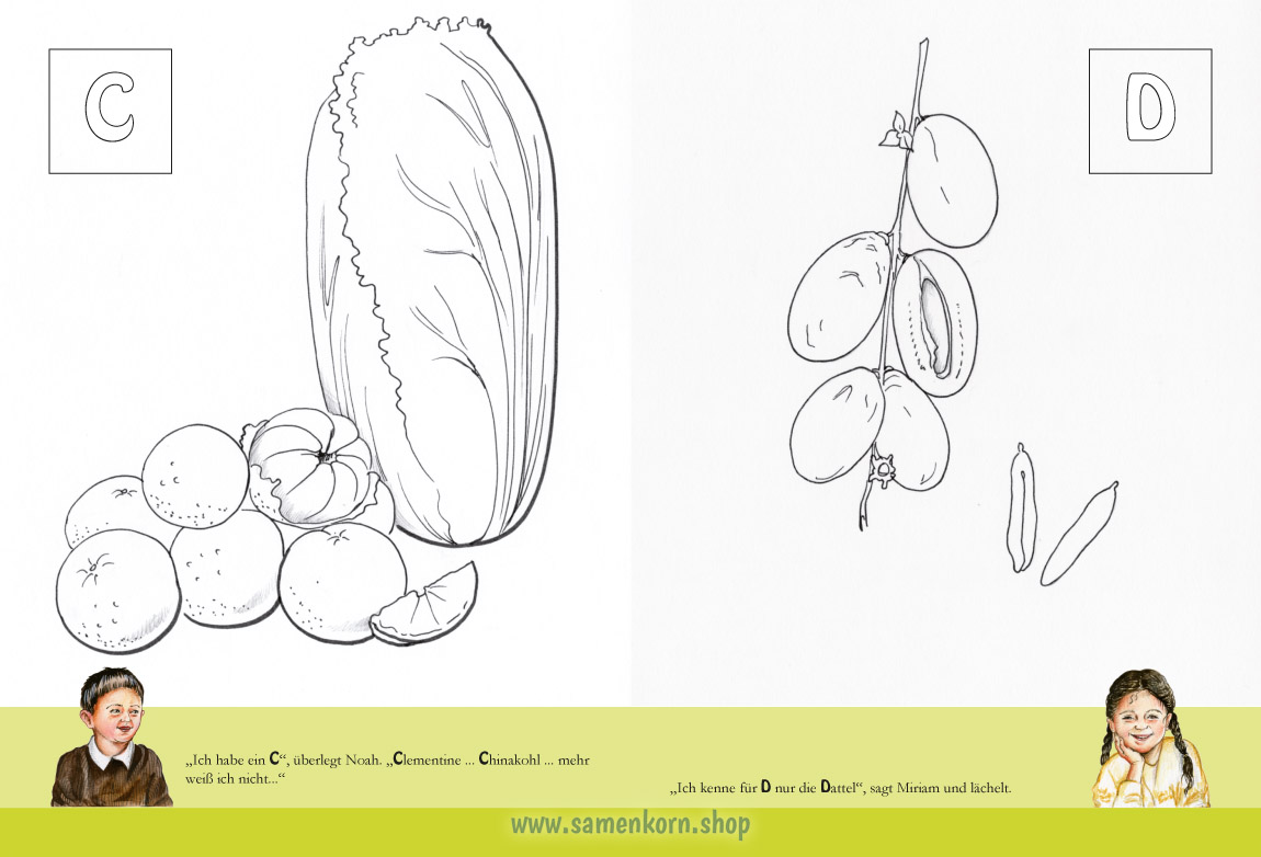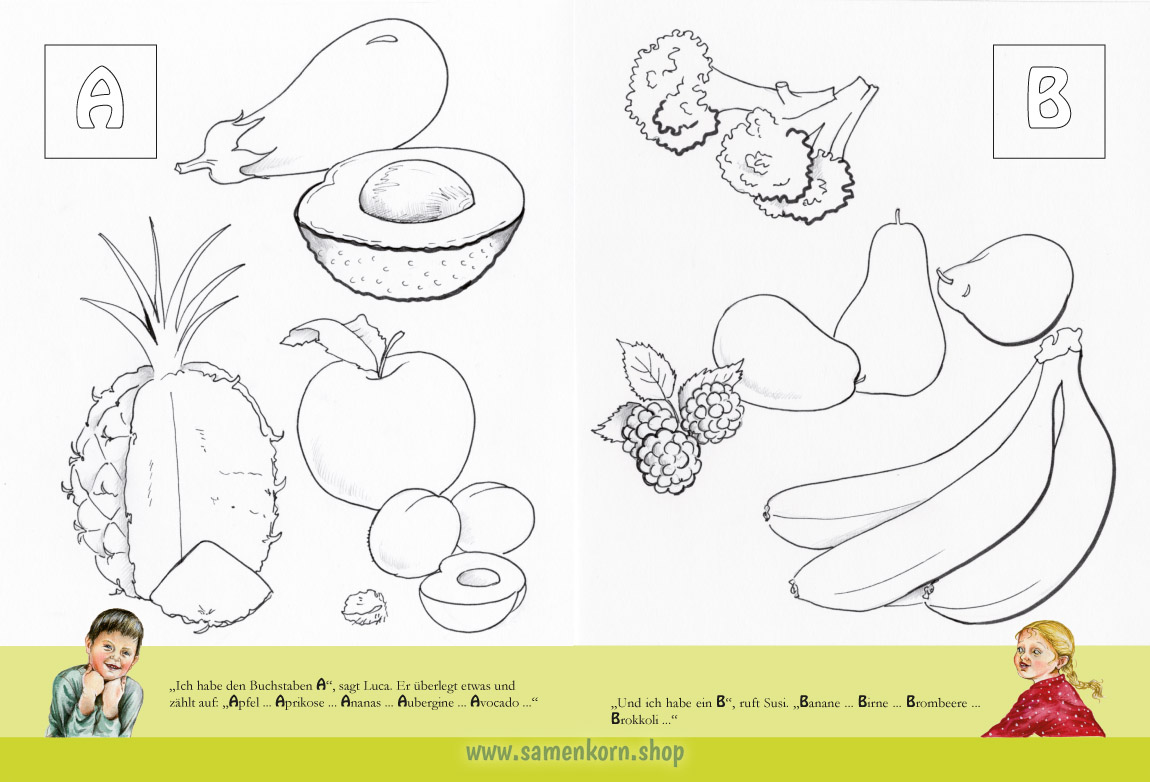 Von A wie Apfel bis Z wie Zitrone: Zum Erntedankfest zählen Tante Renate und die Kinder alle Obst- und Gemüsesorten auf, die sie kennen.