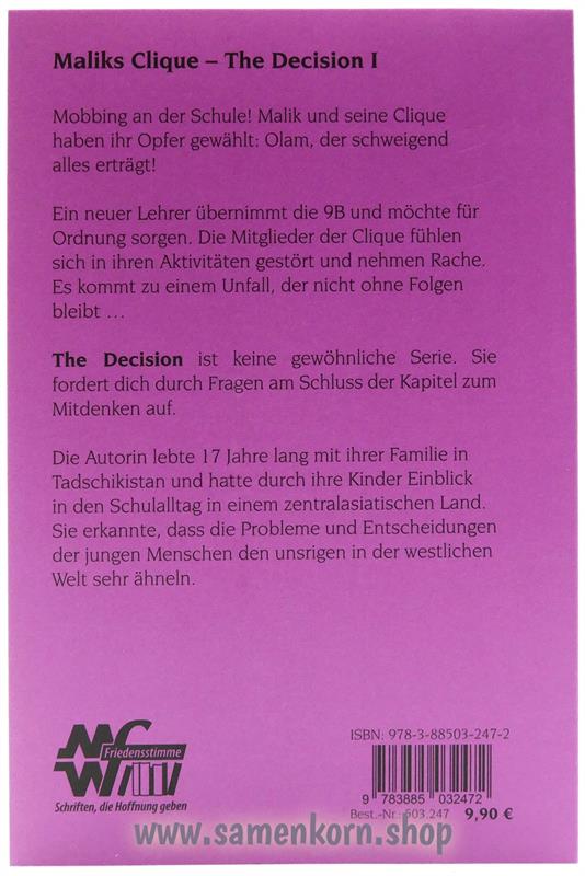 Band 1 der Serie »The Decision« (engl. die Entscheidung). Sie ist keine gewöhnliche Serie, sondern sie fordert dich auf, mitzudenken. Nach jedem Kapitel gibt es eine Frage, die dir helfen will, selber Entscheidungen fürs Leben zu treffen.