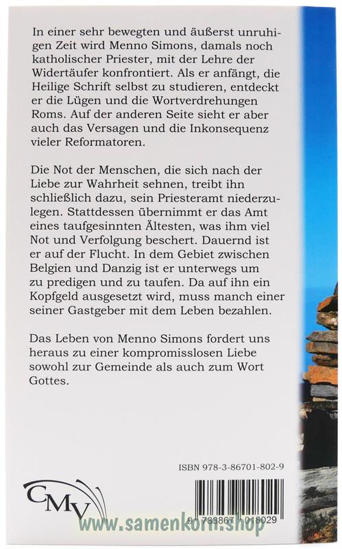 Die Not der Menschen, die sich nach der Liebe zur Wahrheit sehnen, treibt ihn schließlich dazu, sein Priesteramt niederzulegen. Stattdessen übernimmt er das Amt eines taufgesinnten Ältesten, was ihm viel Not und Verfolgung beschert. Dauernd ist er auf der Flucht. In dem Gebiet zwischen Belgien und Danzig ist er unterwegs um zu predigen und zu taufen. Da auf ihn ein Kopfgeld ausgesetzt wird, muss manch einer seiner Gastgeber mit dem Leben bezahlen. Das Leben von Menno Simons fordert uns heraus zu einer kompromisslosen Liebe sowohl zur Gemeinde als auch zum Wort Gottes.