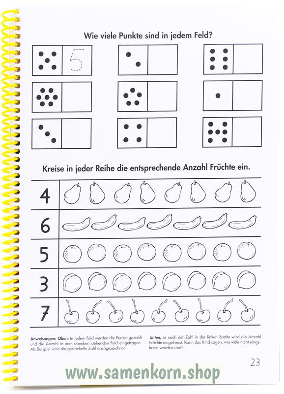 Mit Zahlen umgehen vermittelt dem Kind, die Zahlen 1-10 zu erkennen, zu schreiben und zu verstehen. Es lehrt die Reihenfolge der Zahlen und einfache, zur Mathematik gehörende Worte wie mehr, weniger, leer, voll, zuerst und zuletzt.