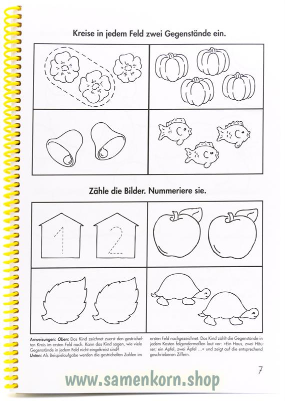Jedes Heft enthält Anweisungen für die Eltern. Ferner gibt es Anregungen, um die Kinder auf viele alltägliche Dinge aufmerksam zu machen, welche die Begriffe, die gerade gelehrt werden, einprägen helfen.