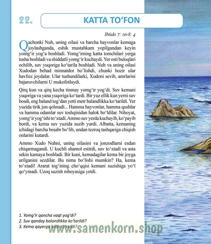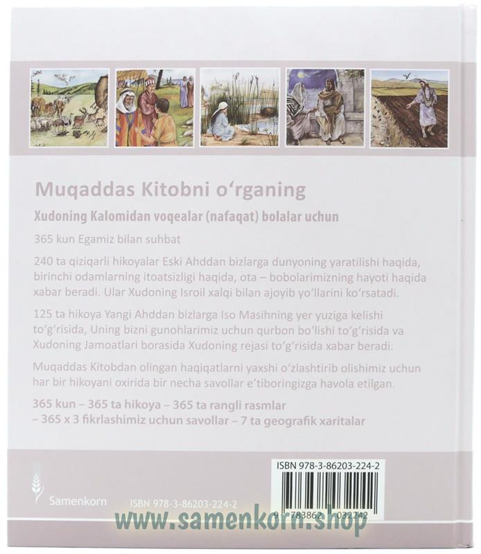 Bizning qo?limizda – Muqaddas Kitobdan hikoyalar. Unda 240 hikoya Eski Ahddan va 125 hikoya Yangi Ahddan, hammasi bo?lib 365 hikoya – yilning har bir kuni uchun bittadan.