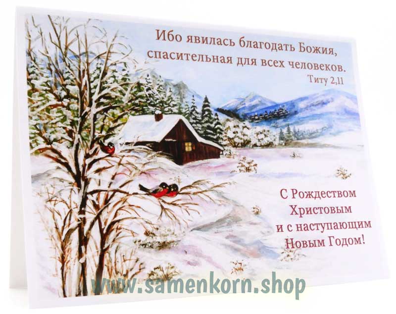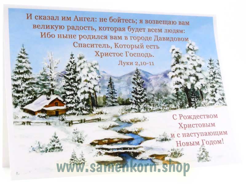 Набор открыток „С Рождеством Христовым!“ со стихотворениями или местами Писания на вкладыше.