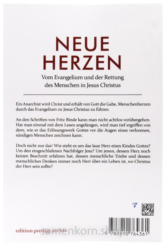 „Neue Herzen“ ist eine leidenschaftliche evangelistische Schrift, die nichts beschönigt. Fritz Binde, einst Anarchist – später Evangelist –, zeigt auf, warum politische, soziale und wirtschaftliche Revolutionen am Kern des Menschen vorbeigehen. Wahre Veränderung beginnt nicht im System, sondern im Herzen.