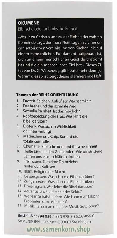 „Wer Ja zu Christus und zu der Einheit der wahren Gemeinde sagt, der muss Nein sagen zu einer organisatorischen Vereinigung von Kirchen, die auf einem menschlichen Fundament aufgebaut ist ...“ Dieses Zitat von Dr. G. Wasserzug gilt heute mehr denn je.