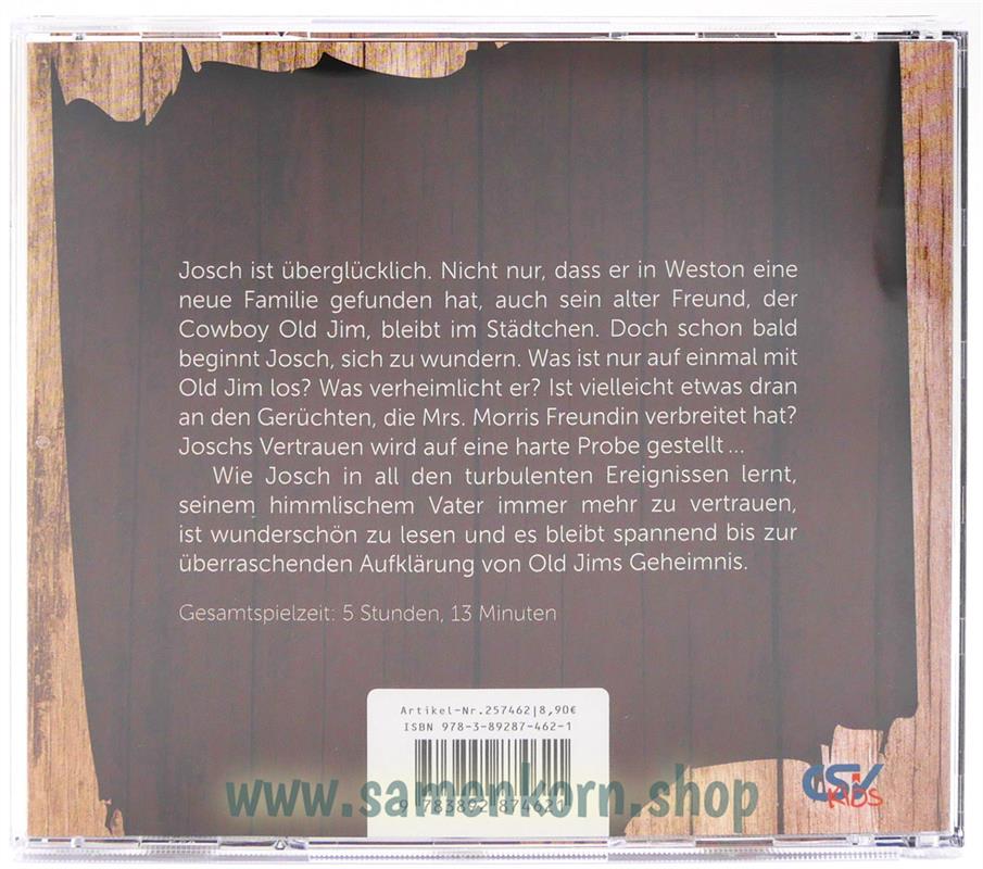 Josch ist überglücklich. Nicht nur, dass er in Weston eine neue Familie gefunden hat, auch sein alter Freund, der Cowboy Old Jim, bleibt im Städtchen. Doch schon bald beginnt Josch sich zu wundern. Was ist nur auf einmal mit Old Jim los? Was verheimlicht er? Ist vielleicht etwas dran an den Gerüchten, die Mrs. Morris Freundin verbreitet hat? Joschs Vertrauen wird auf eine harte Probe gestellt ...