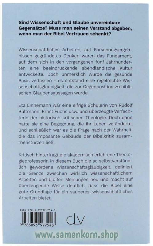 In diesem Buch rechnet die einstige Bultmann-Schülerin mit der historisch-kritischen Theologie, ja, mit dem ganzen heutigen Universitätsbetrieb in einer erfrischenden Deutlichkeit ab, die nichts zu wünschen übrig lässt, und stellt bibeltreue Alternativen auf. Sie belegt ihre Argumente mit Gottes Wort und zeigt den rechten Umgang damit auf.