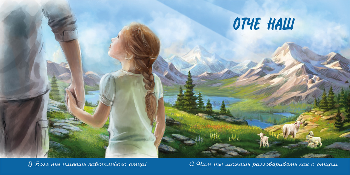Молитва Небесному Отцу по Матфею 6, 9-13 для наших малышей. С пояснениями к каждой просьбе и множеством красочных картинок.
