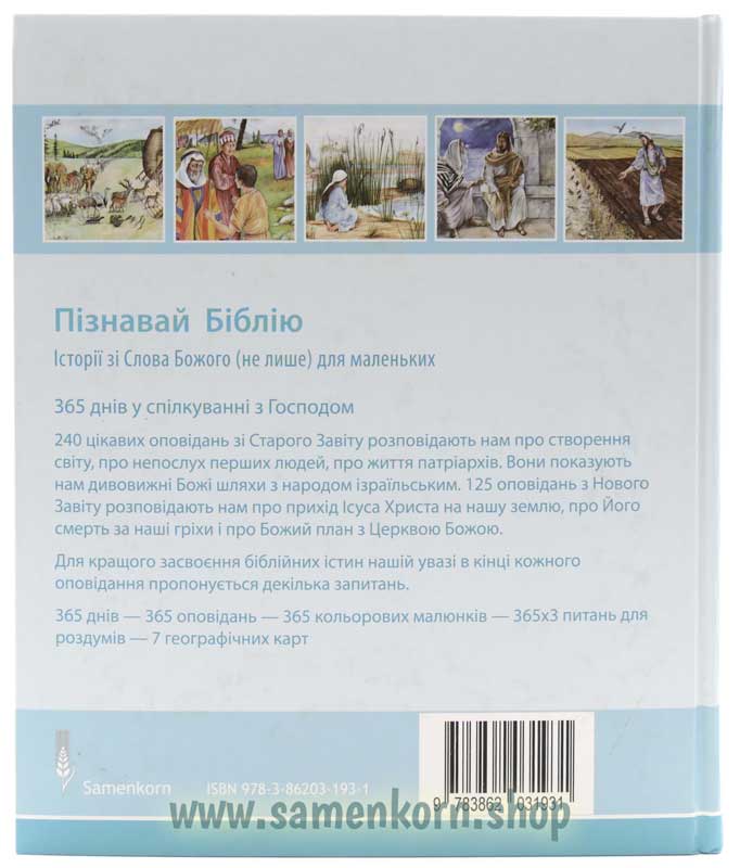 240 цікавих оповідань зі Старого Завіту розповідають нам про створення світу, про непослух перших людей, про життя патріархів. Вони показують нам дивовижні Божі шляхи з народом ізраїльським. 125 оповідань з Нового Завіту розповідають нам про прихід Ісуса Христа на нашу землю, про Його смерть за наші гріхи і про Божий план з Церквою Божою.