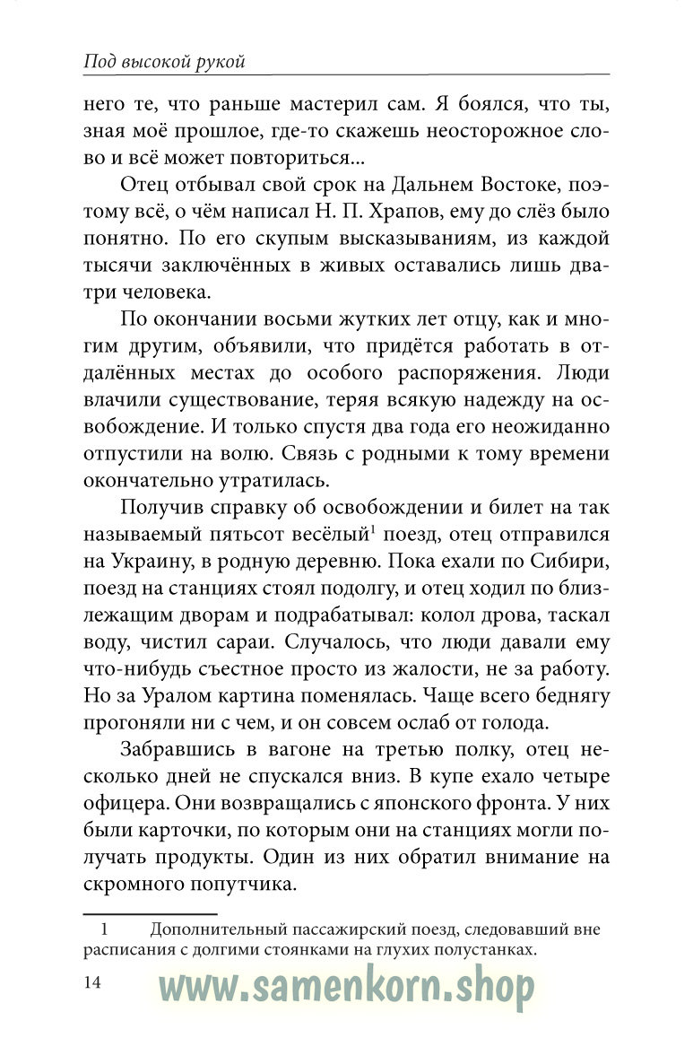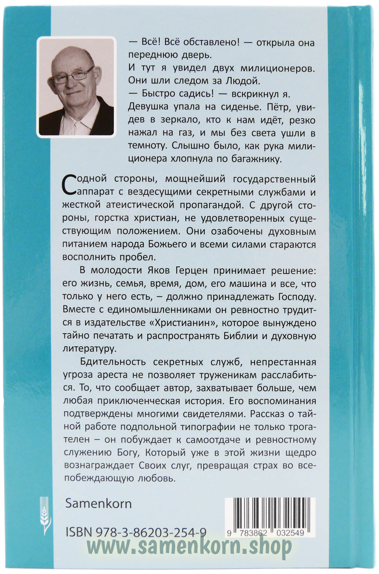 Автор описывает свою службу в Советской Армии и работу издательства «Христианин» в Средней Азии, на Урале и в Сибири. С одной стороны, мощнейший государвтвенный аппарат с вездесущими секретными службами и жесткой атиестической пропагандой. С другой стороны, горстка христиан, озабоченые духовным питанием народа Божьего. Они всеми силами стараются восполнить пробел и при этом раз за разом ощущают высокую, их оберегающую, руку Господа.