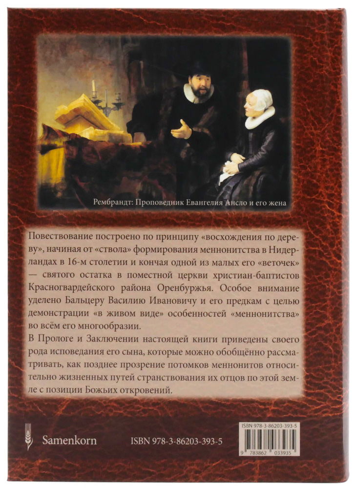 Повествование построено по принципу "восхождение по дереву", начиная от "ствола формирования меннонитства в Нидерландах в 16-том столетии и кончая одной из его малых "веточек" - святого остатка в пометкой церкви христиан-баптистов Красногвардейского района Оренбуржья.