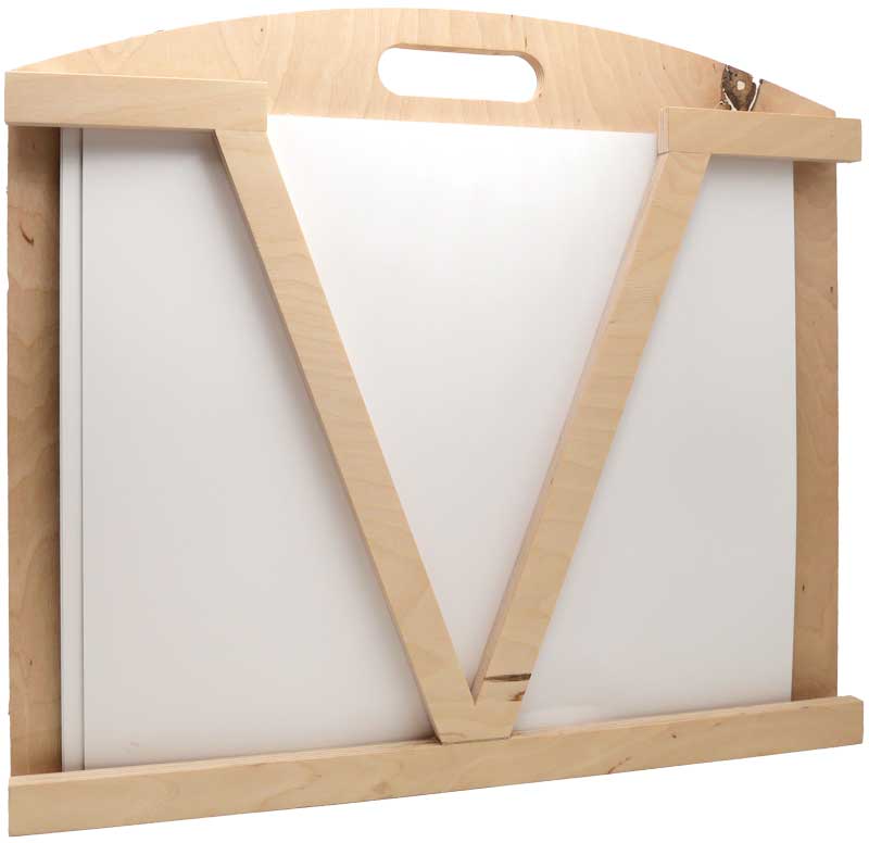Der Rahmen aus Holz passt für Bilder im Format 35x42 cm. Die Bilder können sowohl von oben, als auch von beiden Seiten eingeschoben werden. Die Türen sind mit hochwertigen Scharnieren am Korpus befestigt, Magnete sorgen für den Halt der Türen beim Transport. Mit einem praktischen Tragegriff.