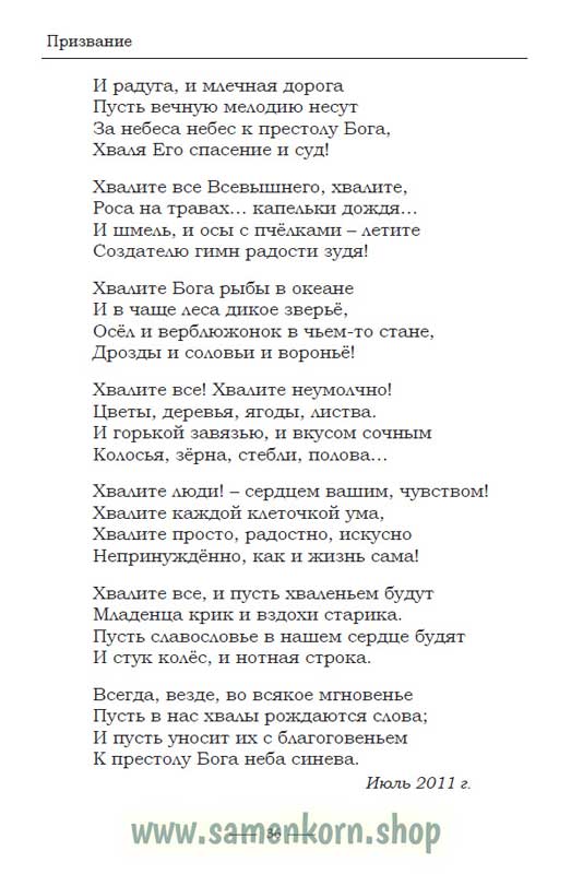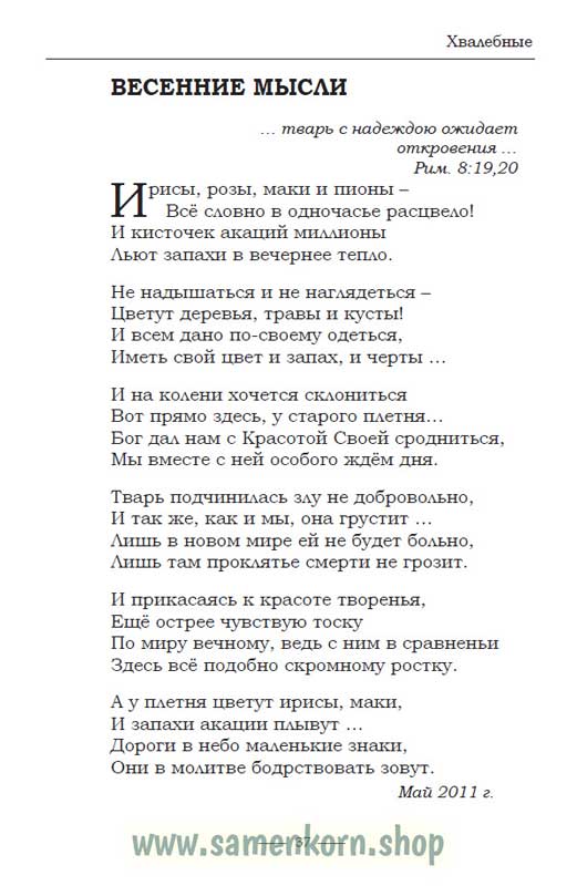 Сборник стихов на различные темы христианской жизни: утешительные, детские, праздничные и другие.