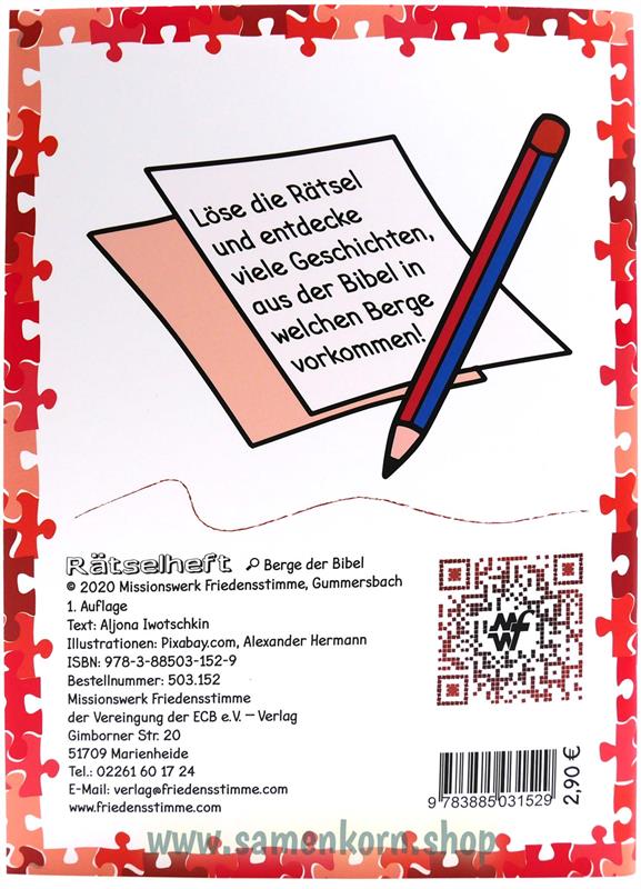 Produktinformationen "Rätselheft "Berge der Bibel" / Heft"