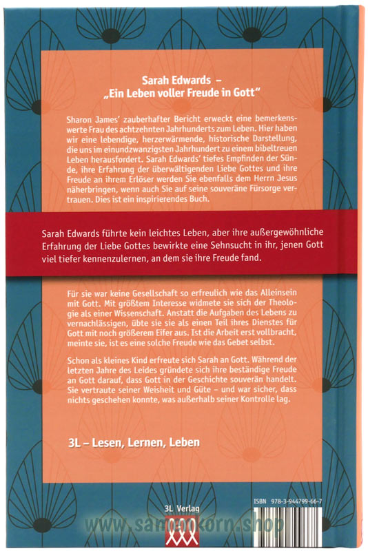 Sharon James’ zauberhafter Bericht erweckt eine bemerkenswerte Frau des achtzehnten Jahrhunderts zum Leben. Hier haben wir eine lebendige, herzerwärmende, historische Darstellung, die uns im einundzwanzigsten Jahrhundert zu einem bibeltreuen Leben herausfordert. Sarah Edwards’ tiefes Empfinden der Sünde, ihre Erfahrung der überwältigenden Liebe Gottes und ihre Freude an ihrem Erlöser werden Sie ebenfalls dem Herrn Jesus näherbringen, wenn auch Sie auf seine souveräne Fürsorge vertrauen. Dies ist ein inspirierendes Buch.