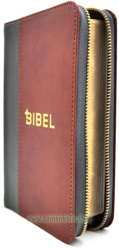 PU-Einband, grau/braun, Goldschnitt, Reißverschluss