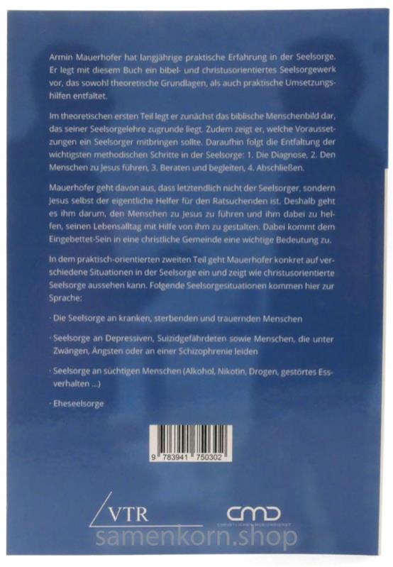 Dr. Armin Mauerhofer hat langjährige praktische Erfahrung in der Seelsorge. Er legt mit diesem Buch ein bibel- und christusorientiertes Seelsorgewerk vor, das sowohl theoretische Grundlagen, als auch praktische Umsetzungshilfen entfaltet.